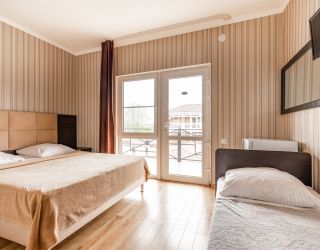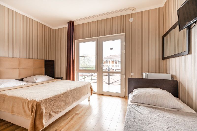 На территории располагается четыре жилых 3-этажных корпуса. Номера различных категорий со всеми удобствами: телевизорами, кондиционерами, холодильниками и сан. узлами.
