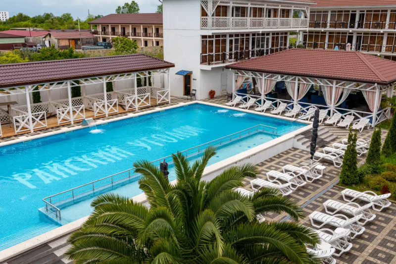 Современный отель «Райский уголок» расположен в 20 минутах езды от центра Пицунды, в поселке Алахадзы, на второй береговой линии. Отель находится на главной улице курортного поселка. В пешей доступности от отеля кафе, продуктовые магазины, сувенирные лавки и пляжного инвентаря. Прямая дорога от отеля без пересечения автотрасс и железнодорожных путей ведет к общественному пляжу.